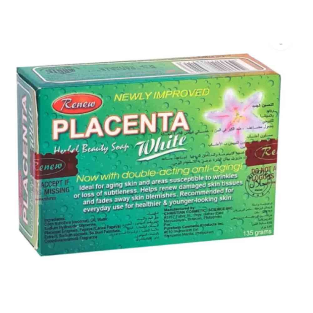 Experience the power of nature and science in one bar. Renew Placenta White Herbal Beauty Soap is specially formulated with natural herbal extracts and placenta protein to deeply cleanse, nourish, and rejuvenate your skin. Its advanced whitening formula helps fade dark spots, even out skin tone, and promote a radiant glow while keeping your skin soft and supple.